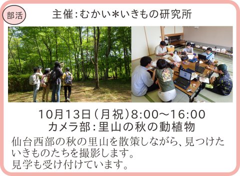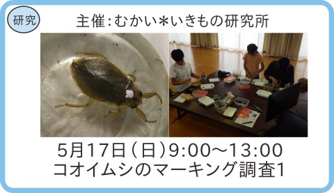 むかい*いきもの研究所は、生きもの観察会や、生きもの調査、ものづくりなどの体験を通して、身近な自然のことを、楽しく学んでいただく活動をしている団体です
