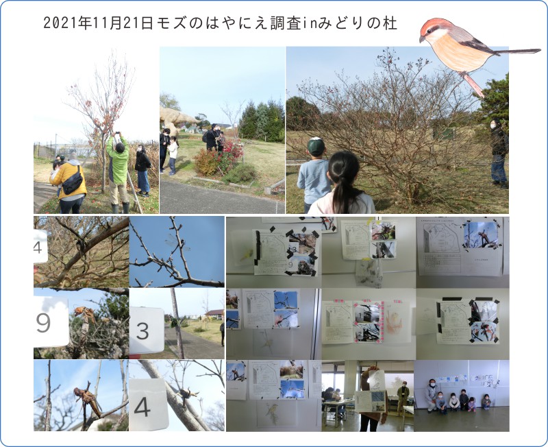みどりの杜でとてもよく見られるモズの生活について、詳しく知ることを目的として、その季節の餌の利用パターンを示していると考えられる『はやにえ』の調査を、2010年から始めました